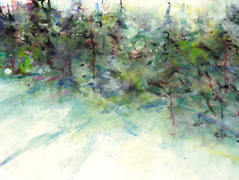 winter sun and pines original watercolor painting 22 X 30