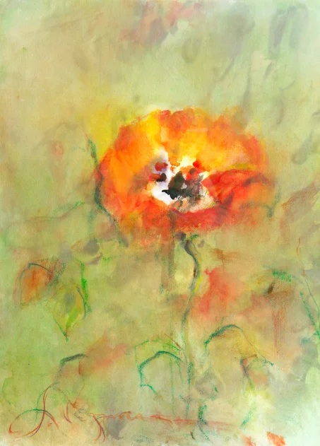 original watercolor painting 2230′ 1,000 Japanese poppy