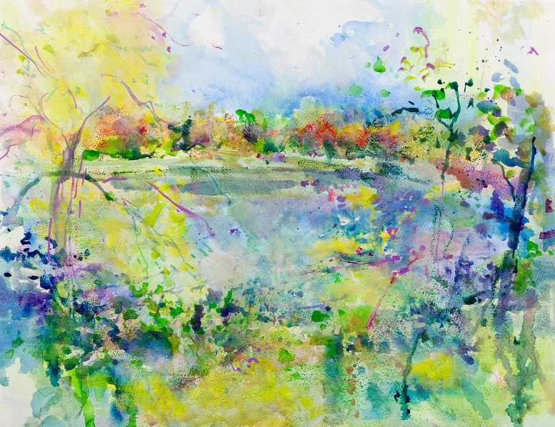 lily lakeoriginal pastel watercolor $1,200 available mixed media 34×28 $900.