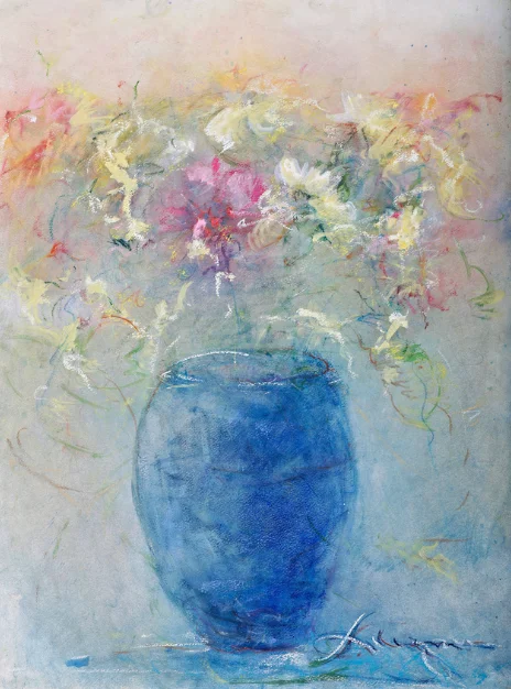 original watrercolor pastel Flowers, Blue Vase #1 $ 1,800