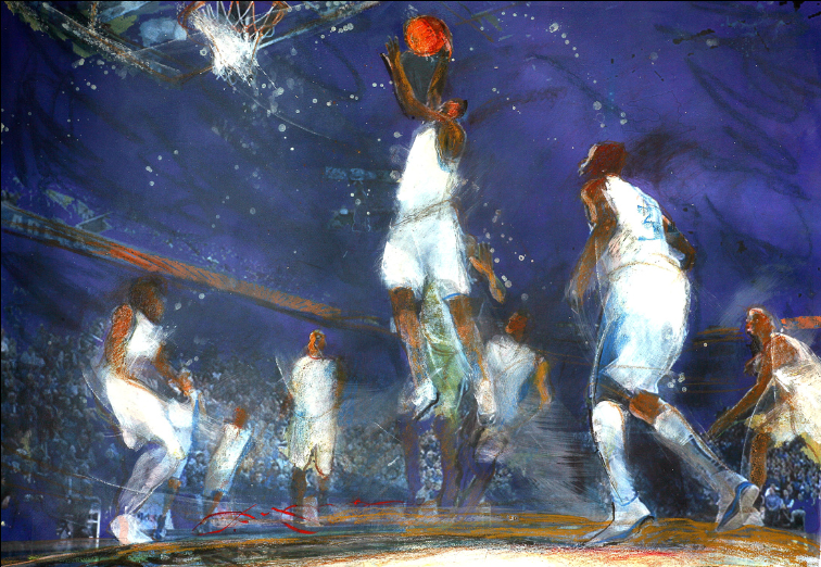 Steve’s illustrations weave narrative and motion, drawing on his background as a sports illustrator and graphic artist. Initially created for publication, these works translate dynamic energy into expressive form. Now presented as print editions or mixed-media pieces, they maintain precision and life through pastel embellishments and glazing. Each illustration tells a story of movement, human spirit, and visual poetry, inviting viewers to connect deeply with themed moments.