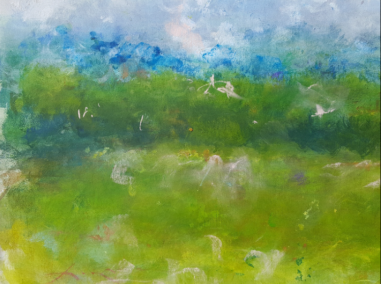 blue mountain lake Adirondack museum September Oct 2016oil pastel 30’x40”
