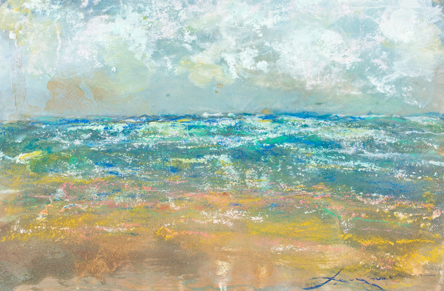 NJshore winter in ventnor original watercolor pastel on location 24 X 14