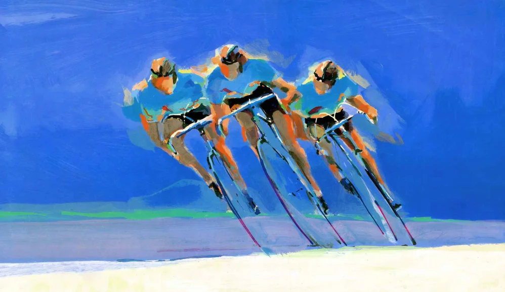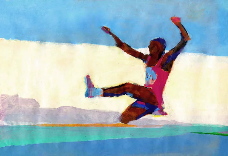 The illustrations featured on this page are part of a distinguished portfolio created for renowned clients, including The New York Times, Time Magazine, the Olympics, World Cup Soccer, NBC, ABC, CBS Football, and HarperCollins. Executed primarily in acrylic with light, luminous layers, these works reflect the influence of prominent contemporary American artists of the 1980s, such as Richard Diebenkorn, Arthur Dove, and Fairfield Porter, as well as the French Impressionist masters Bonnard, Monet, and Renoir.